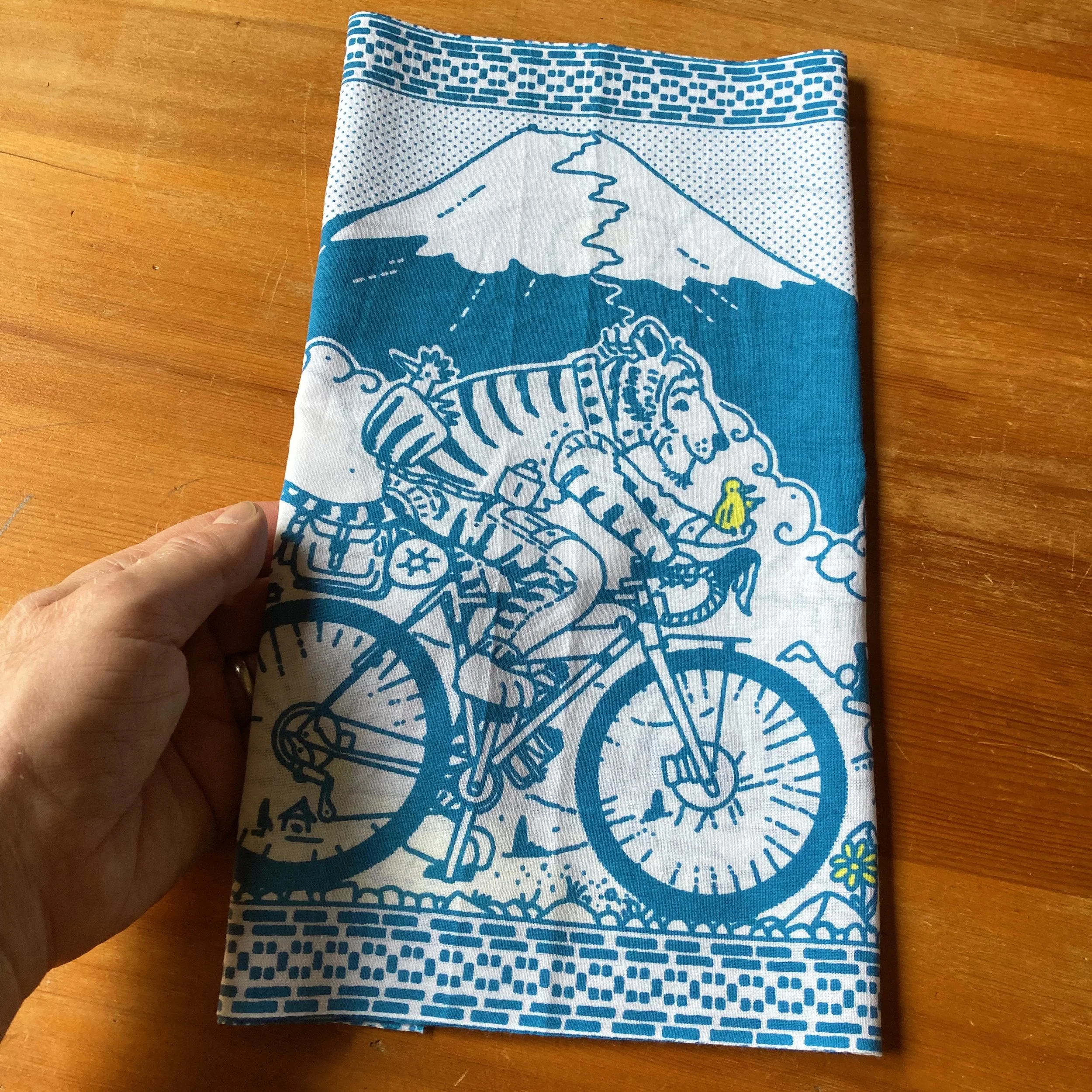 In this year’s Tenugui, Tiger joins his friends on a cycling adventure, traveling in the shadow of Mount Fuji, over the mountains to the sea.